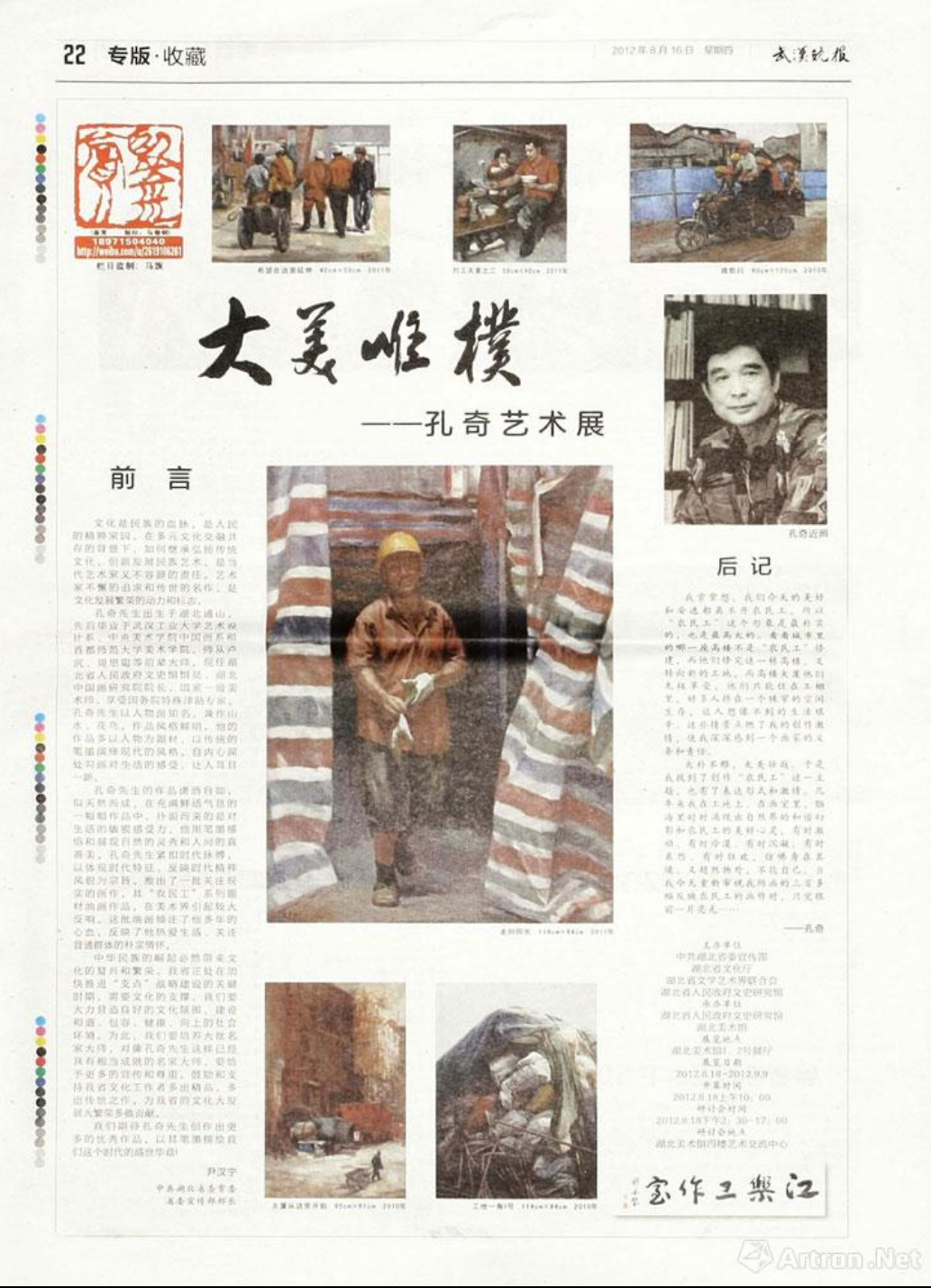 《武漢晚報》刊載大美唯樸——孔奇藝術展